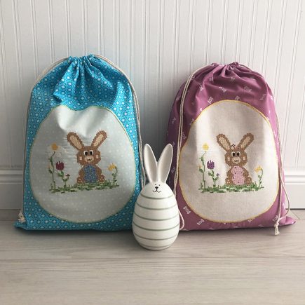 Für die österlichen Geschenkbeutel meiner Kinder habe ich zwei niedliche Osterhasen im Kreuzstich designt. Beide Motive sind als Stickdatei und Stickvorlage erhältlich.